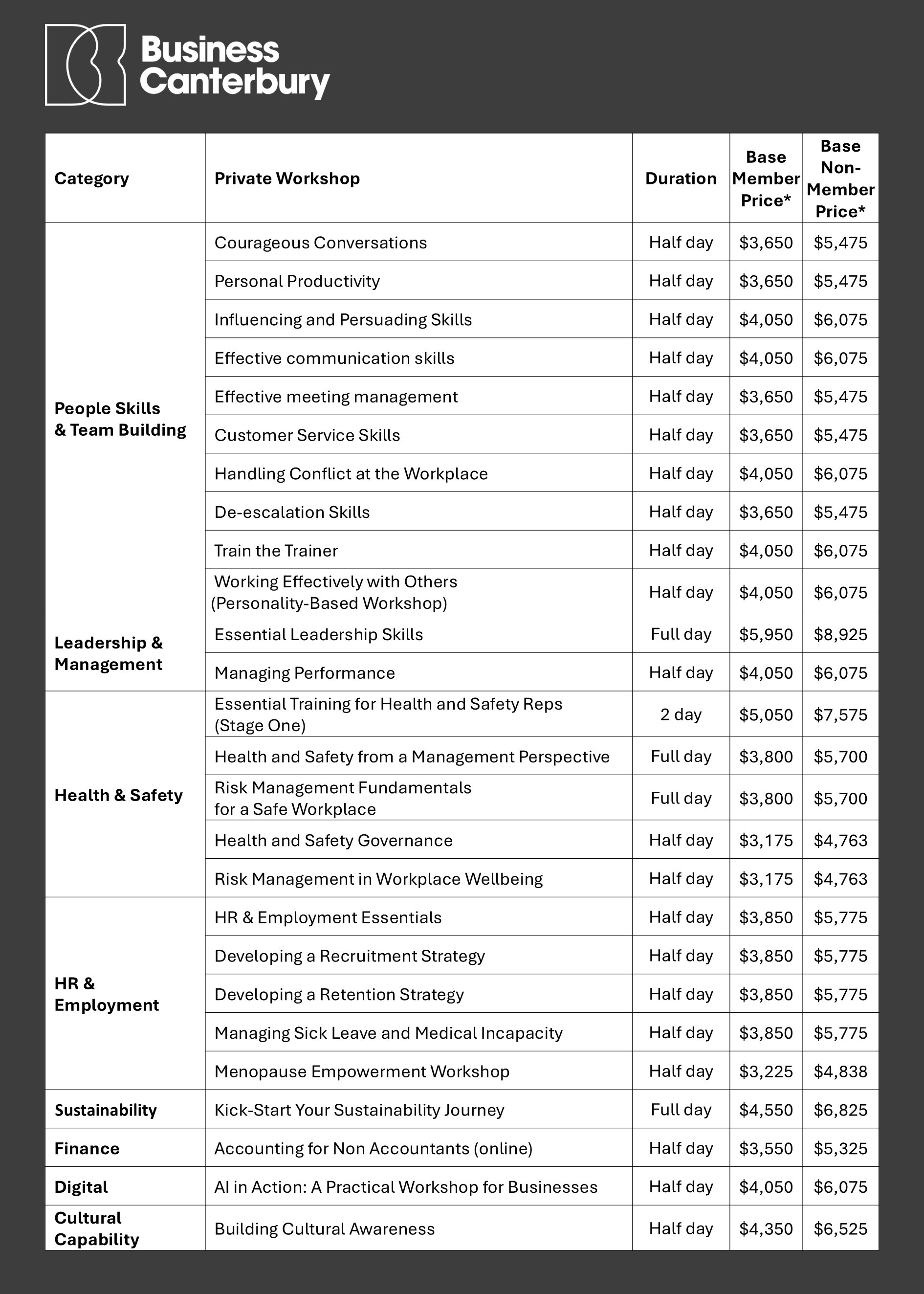 Do you have a team to upskill? Business Canterbury's private workshops are perfect for your business.